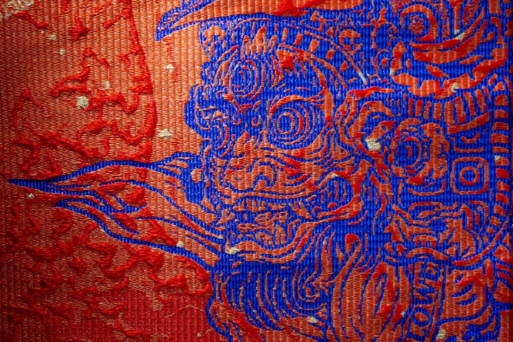 Image credit: ‘Marcos Kueh, detail of ‘福祿壽-Three Contemporary Prosperities: Woven Talisman #5 The Perfect Celebrity’, 2025, 170cm x 235cm, polyester. Courtesy of Galerie Ron Mandos, Amsterdam. © Marcos Kueh‘