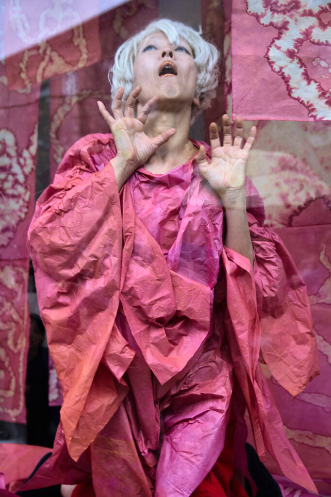 Installation including animation by Sae Esashi, hand dyed, paper, ceramics, durational performances, readings.